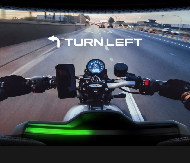 The helmet's heads-up display shows critical information, such as navigation, speed, and weather updates, right in front of your eyes, without obscuring your vision.