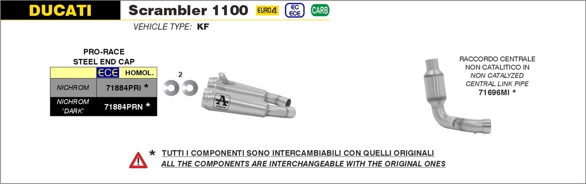 Arrow 71884PRN Pro Race Exhaust, Nichrom Dark is made specifically for Ducati Scrambler 1100 (2018-current).