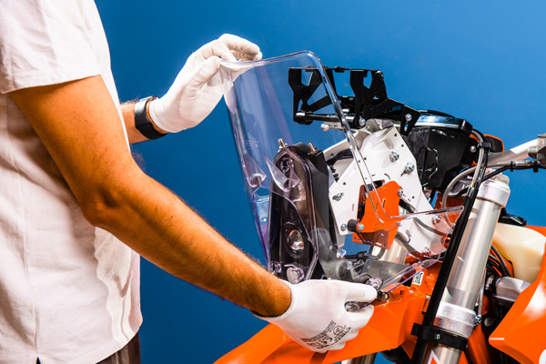 The KTM rally screen is easily removable with two ¼ turn bolts, allowing quick access without interfering with the tank.