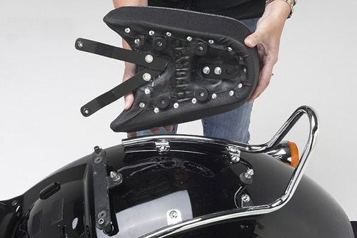 - Saddle installs using proprietary mounting system that uses existing locations on your Fury. All brackets and hardware are included. Passenger seat mounts to included stainless steel fender stud at the rear and secures to solo seat bracket at the front. Solo seat bracket is included with Corbin solo seat.