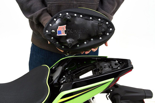 Our Fibertech basepan creates a firm foundation for the foam shape and keeps the carefully designed ergonomics intact. Engineered to fit every contour of the Ninja and provide a perfect fit. Under the saddle, rubber bumpers keep your paint job safe from scuffing. Both front and rear saddles mount like stock. Front saddle uses bracket transferred from your stock seat while passenger saddle comes ready to install.
