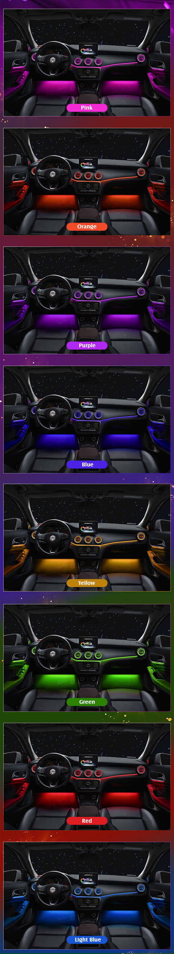 - Produce uniform contour illumination throughout the car's interior that is bright, clear, and colorful.