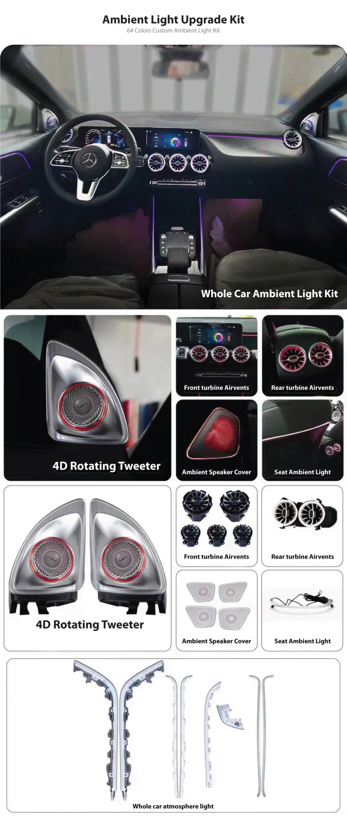This kit is ideal for owners who want a factory-correct ambient lighting look, whether upgrading an existing system or adding ambient lighting to a GLA that didn’t originally have it.