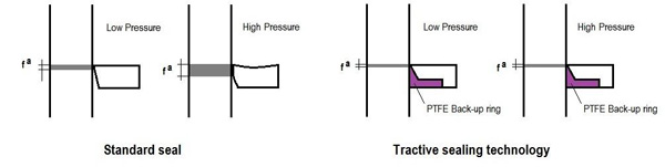 Low-Friction Seal:- Our seals have a backbone that virtually eliminates friction interference on the damping activity. On other shocks, the seal deforms as damping pressure increases and causes stiction on the shaft. Touratech Suspension is equipped with a proprietary low-friction seal that is supported by Teflon back-up ring. This Teflon backbone keeps the seal from deforming and eliminates stiction on the shaft even at high pressures. The result is better performance, increased reliability, and longer service life, even in harsh environments.